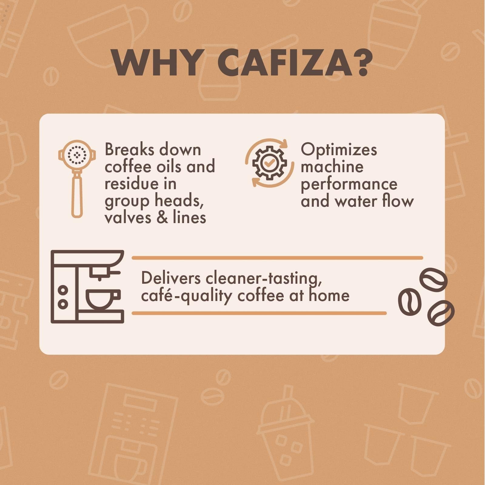 Cafiza is a coffee shop staple for baristas and business owners looking to keep their espresso equipment clean and serve great tasting espresso beverages. It is highly versatile and can be used to clean espresso machine group heads, valves, lines, portafilters and even roasting equipment. Cafiza is formulated to balance powerful cleaning strength with optimal solubility so that it is easy and effective to use in commercial environments. Cafiza is also available in tablet form. Keeps equipment clean, brews better tasting coffee: Eliminates coffee residue and oils from espresso machine group heads, valves and lines Specially formulated to clean heavily soiled equipment in a professional or high volume brew setting. Cafiza is also great for home equipment or to be used in an office setting Powder format allows for easy and controlled dosing Recommended for use as part of a daily backflush regimen Organic Materials Review Institute (OMRI) listed and NSF certified - Made in USA