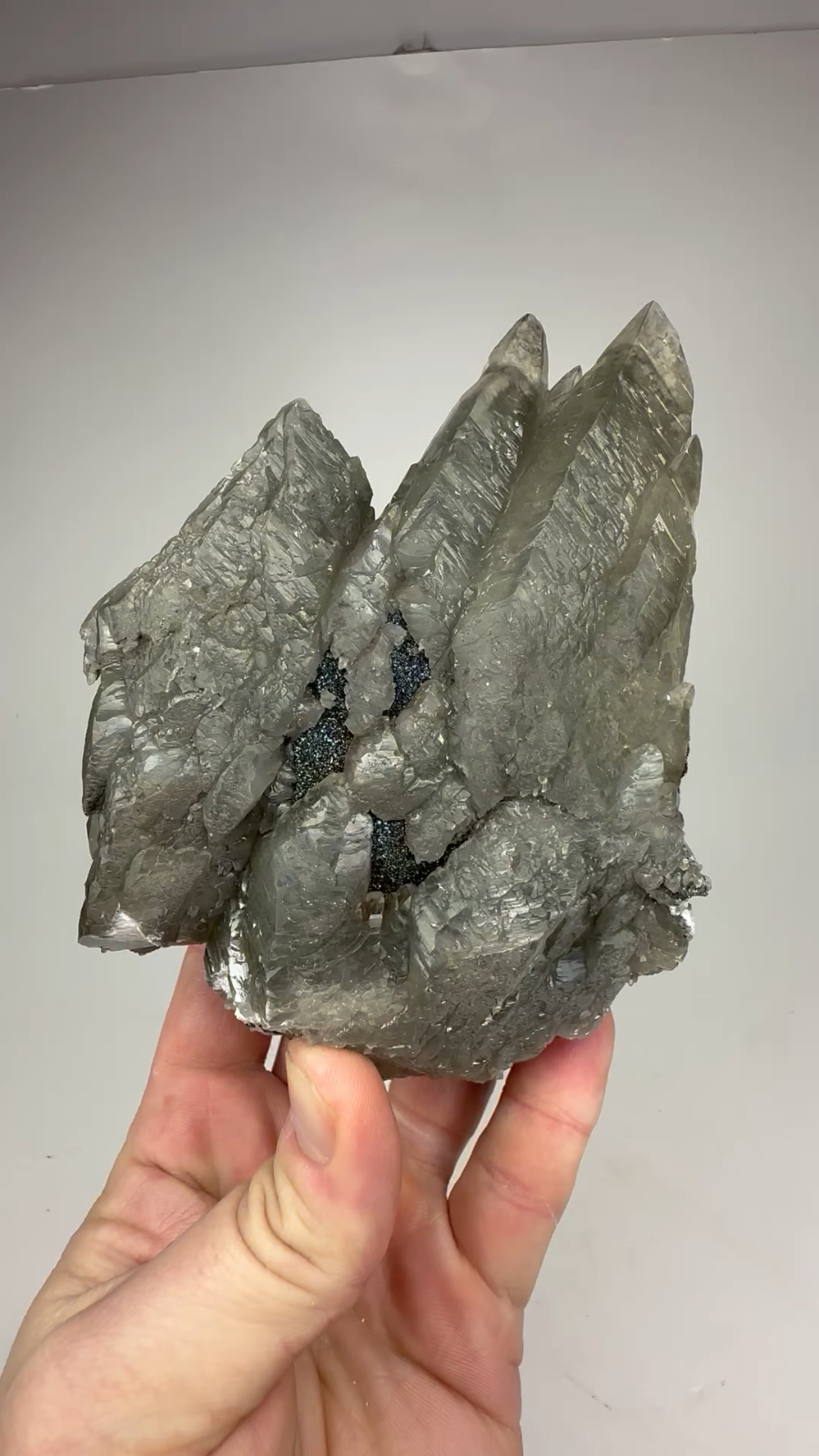 Lustrous, phantom calcite crystals with pretty sparkly iridescent, mostly blue, marcasite. Old 1990's stock from the Brushy Creek Mine, Reynolds Co., Missouri. 922 g 14.4 x 11.0 x 6.0 cm Payment plans are available for higher value purchases. Please reach out for details. I do offer combined shipping and always automatically refund extra shipping costs. If you have any questions regarding how combined shipping works, please reach out to me, as there are occasionally issues for buyers when going to check out. *I buy specimens and small collections.* Please feel free to check out my other listings, as I am adding new material several times a week. All items come with an ID tag from my store along with any original tags that have come with the specimen. In some cases, I am open to offers! Shoot me one if you are interested, I won’t be offended! All specimens are packaged with extreme care! In the rare and unlikely event of a damaged product, I will provide a full refund. Thank you for your interest!