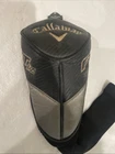 The Callaway FT iz Fairway Wood Headcover is a black cover made of vinyl and nylon, designed for golfers to protect and identify their fairway wood. It features easy identification, simple usage, and includes numbers for customization. This headcover is designed for a wood club from the Callaway brand. Great for golf enthusiasts looking to keep their club in top condition on the course. Used in Average Condition.