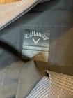 The Callaway Opti Dri Golf Performance Shorts in men's size 36 with a 10" inseam are a stylish and functional addition to your wardrobe. Made from a blend of polyester and spandex, these shorts offer stretch for ease of movement while playing golf or engaging in other outdoor activities. The gray and pink plaid design adds a touch of casual flair, suitable for various occasions including travel, casual outings, workwear, or business meetings. Featuring a mid-rise fit and slash pockets, these Bermuda-style shorts are lightweight, moisture-wicking, and easy to care for with machine washable instructions. Perfect for the summer, fall, or spring seasons.