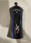 The Callaway XR Speed Fairway Wood Headcover is a single item set designed for golfers. It features a blue, black, and silver color scheme with Callaway branding. Made of leather and acrylic, it provides easy identification and use for golf clubs. This headcover is specifically designed for the XR Speed model, ensuring protection and style on the golf course. Used in Excellent Condition