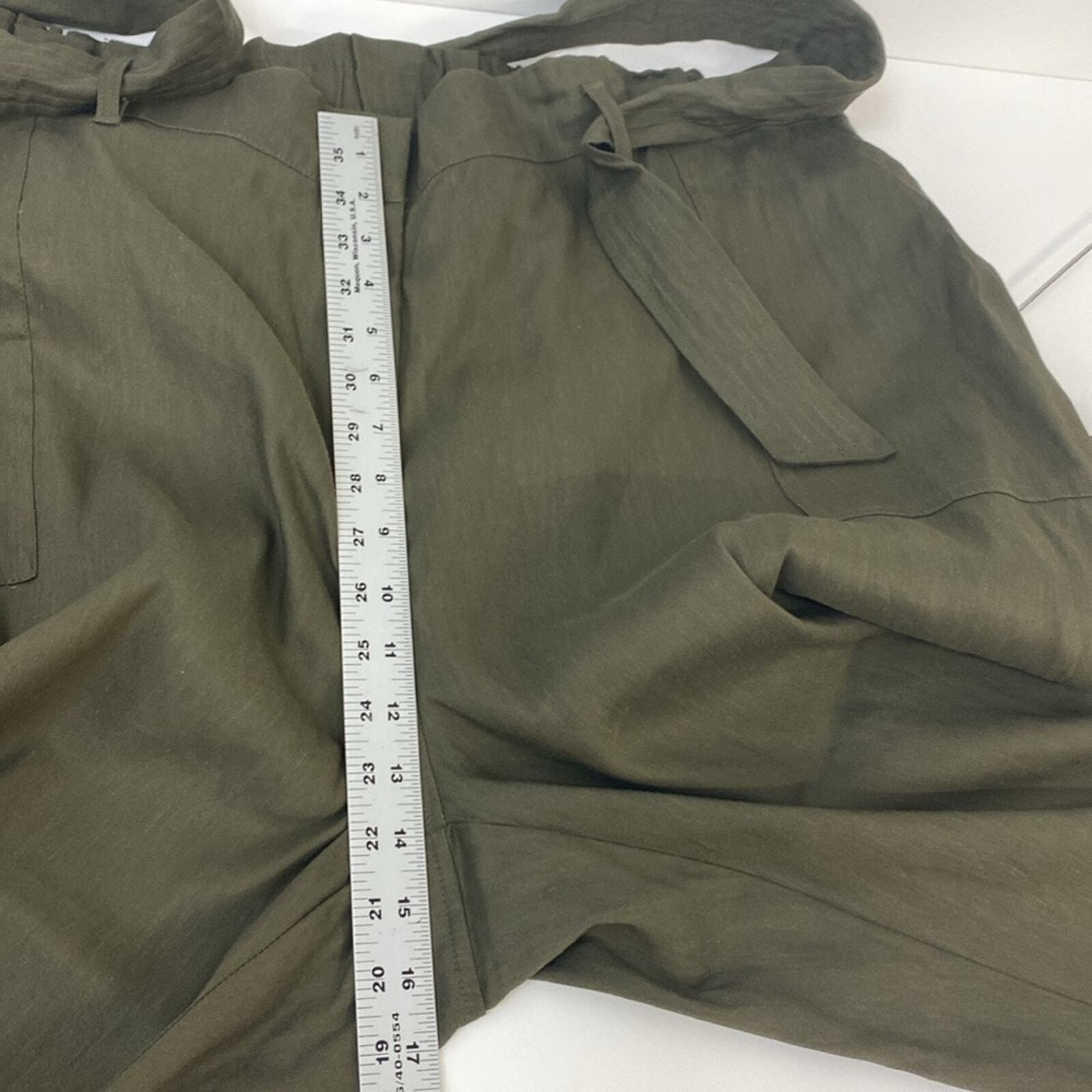 Tahari Linen Wide Leg Cropped Pants High Rise Elastic Waist Beige Size Medium