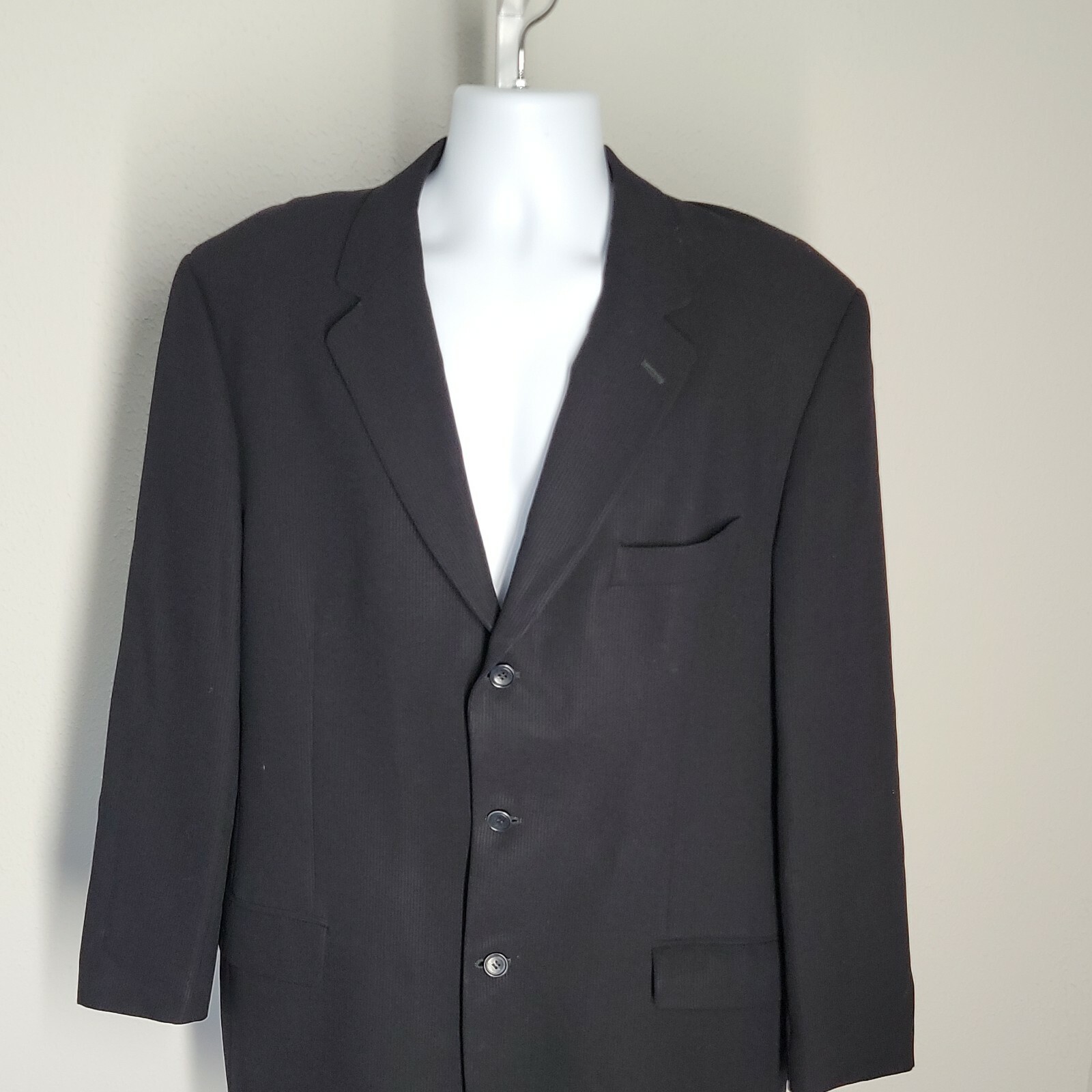 Calvin Klein Classy 3 Button Suit Jacket ~ Sz 44L ~ Black ~ Lined ~ 24" Arm Pit to Arm Pit ~ 21.5" Across Waist ~ 24.5" Sleeve Length ~ 34.5" Length Item is in great condition. Returns: If you decide you do not like the item or it does not fit I do accept returns within set amount of time. Payment: I do not require immediate payment, however please pay as soon as possible. Shipping: I do offer combined shipping. It is highest price plus $2 each additional item. Feedback: Feedback is automatically left after customer leaves me feedback. Condition: I try to be reserved when putting in the condition. Items are usually better than described unless it is vintage. Vintage may be a little more worn sometimes. If you have a question about condition, please ask. Also my home is smoke free and pet free. Thanks again for your interest in my item. I really do appreciate your business!