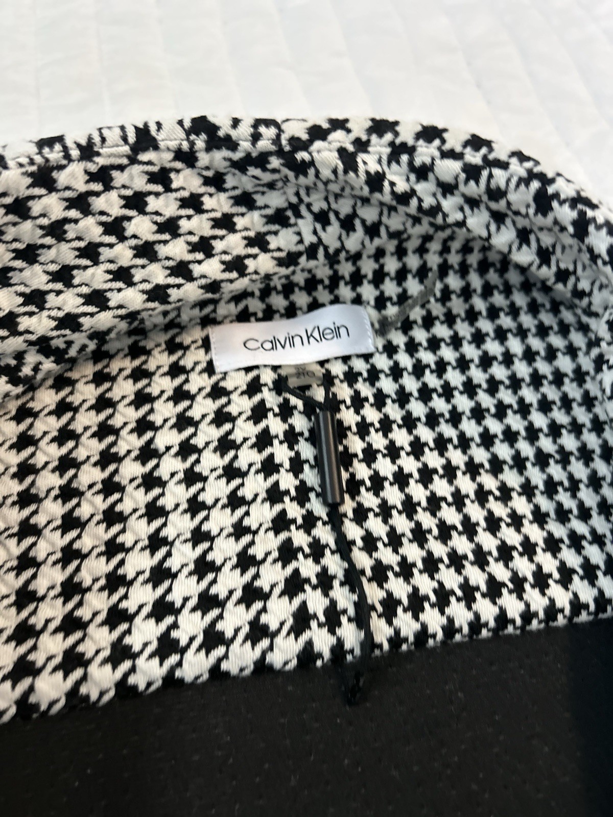 Calvin Klein Women’s Houndstooth Knit Jacket • Size XL • Black & white houndstooth • Open-front design • Stretch knit fabric • Zip pockets • Classic CK quality Condition: Excellent pre-owned. No stains, holes, snags, or pilling. Clean and from a smoke-free home. Ships fast!