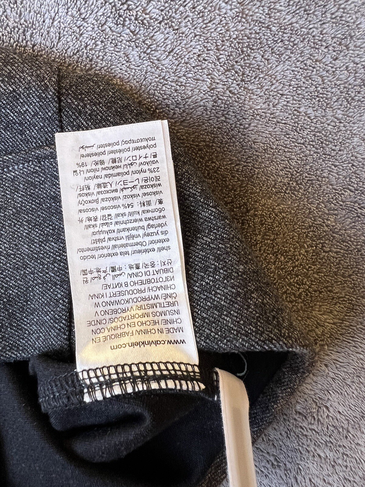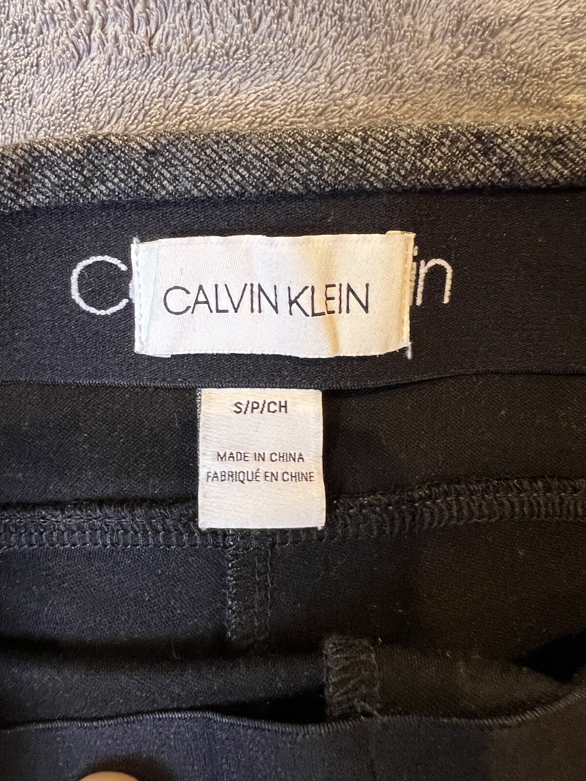 Calvin Klein Classic Fit Gray Bootcut Dress Pants are women's dress pants made of a blend of materials. They have a solid pattern, a zip closure, and a flat front. The pants have a mid-rise and a bootcut leg style. They are gray in color and come in size S with a waist size of 33 inches and an inseam of 32 inches. The pants are from the Calvin Klein brand and have a classic fit.