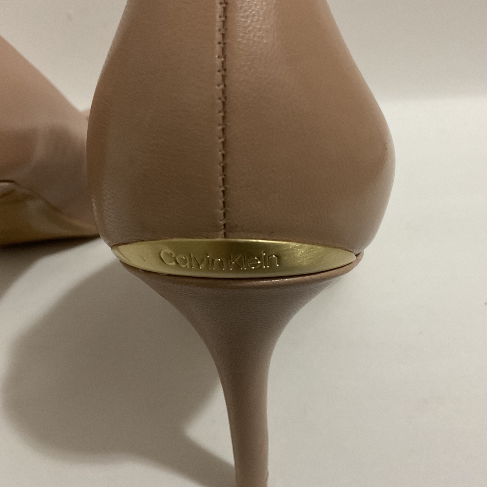 The Calvin Klein Gayle Pointy Toe Stiletto Pumps in nude leather are a stylish and sophisticated choice for special occasions. With a pointed toe and slip-on closure, these high heels feature a stiletto heel for added elegance. Perfect for weddings, parties, formal events, or business functions, these pumps are designed for the fashion-forward woman looking to make a statement. The beige color and cushioned features make them both comfortable and chic, ideal for those who want to stand out and turn heads.