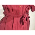 Calvin Klein wide leg jumpsuit in a rich burgundy wine hue features a textured crepe-like fabric that adds depth and sophistication. Designed with a flattering V-neckline and decorative front buttons, this one-piece includes a matching tie-waist belt to cinch the silhouette. The short sleeves are detailed with charming tie accents, and the piece is finished with practical side pockets and a discreet back zipper closure. Brand: Calvin Klein Style: Wide Leg Jumpsuit Color: Burgundy Wine Neckline: V-Neck Sleeve: Short Sleeve with Tie Detail Closure: Back Zipper Pockets: Side Seam Pockets Fabric: Textured Crepe Waist: Tie Belt Leg: Wide Leg Occasion: Casual, Work, Event Keywords: Maroon, Romper, Culotte, Gauzo, Crepe, Textured, Tie Sleeve, Business Casual, Minimalist, Chic, Autumn, Fall Fashion, Wine Red Fast 1 day Shipping