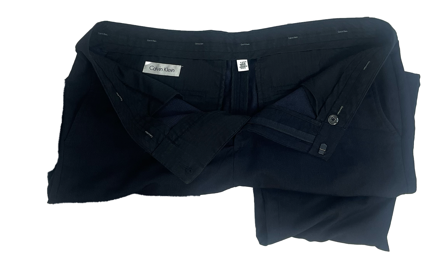 Crafted for the modern man, these Calvin Klein Men's Slim Fit Dress Pants in size 34x34 offer a sleek and professional appearance. The pants are designed with a timeless solid black color, ensuring versatility for various occasions and easy pairing with your favorite dress shirts. The dress pants feature a comfortable flat front and are equipped with a zip, button, and hook & eye closure for a secure fit. Their slimming features and Calvin Klein's reputation for quality make them an essential addition to any wardrobe. Whether it's for office wear or a formal event, these pants promise to elevate your style with their impeccable tailoring and understated elegance.