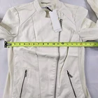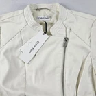 Calvin Klein Moto Jacket Women Small Vegan Leather White Color With Zippers. $129.50 MSRP. Has A Few Small Discoloration Spots From Storage, Probably Easily Removable With The Right Product, Shown In Last Pictures. Please Check All Pictures Closely For A More Detailed Visual Description Of Condition. Ships Out Free Within One Business Day.