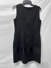The Calvin Klein Rich Black Ponte Knit And Faux Leather Dress in size 12P is a stylish and versatile piece perfect for various occasions. This sleeveless dress features a high neckline and a zip closure, with a solid black color and a knee-length sheath style. Made from faux leather and knit fabric, it exudes a classic designer vibe suitable for formal events, parties, business meetings, and even travel. The timeless elegance of this dress makes it a must-have in any woman's wardrobe, whether it's for winter, summer, fall, or spring.