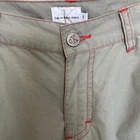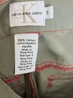 Vintage Calvin Klein jogger pants from the 90s, in a solid olive green color. These size 5 cargo utility pants feature a mid-rise waist with a drawstring closure, made of lightweight and breathable cotton canvas fabric. They have a cropped length with cuffed hems and the Calvin Klein logo accent. Perfect for a comfortable and stylish addition to your wardrobe with a Y2K aesthetic. In excellent condition other than a couple light scuff marks on legs as pictured. Measures approximately 16.5” across waist laying flat with a 27” inseam and a 9” rise.