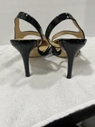 Badgley Mischka Monique Black Satin Open Toe Pumps Stiletto Shoes Black Size 8
