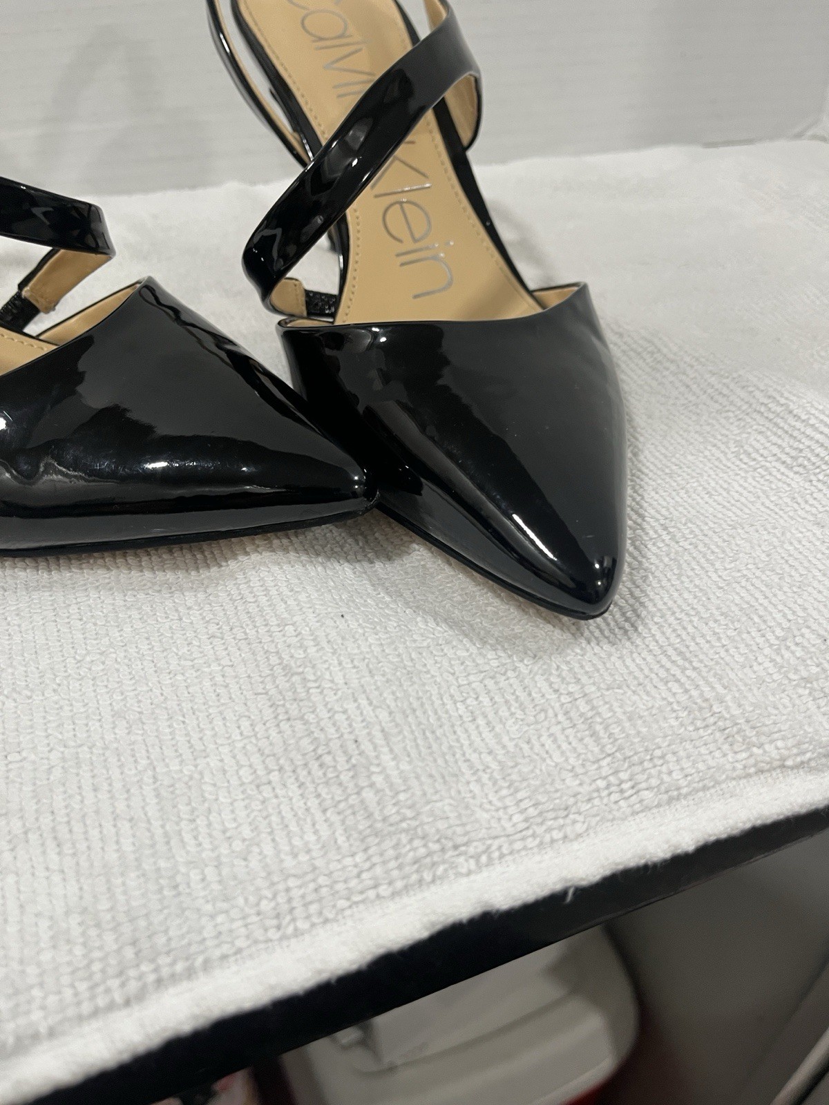 These Calvin Klein Women's Black Heel Shoes in size 7 are a stylish and sophisticated choice for any business occasion. With a slip-on closure and stiletto heel style, these pumps offer both comfort and elegance. Made of leather, these shoes are durable and perfect for all seasons. The high heel height and solid black color make them versatile for a variety of themed events, from formal to casual. The Calvin Klein brand adds a touch of luxury to these timeless and chic heels.