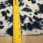 This Calvin Klein women's polo shirt in size L features a tie-dyed pattern in blue and white. It has a short sleeve design with a spread collar neckline and a pullover closure. Made of a rayon blend material, this regular fit shirt is machine washable and breathable, suitable for casual wear in the spring season.