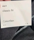 Elevate your wardrobe with these timeless Calvin Klein Dress Pants in Classic Fit. The solid gray color and straight leg style make them perfect for any occasion, whether it's for travel, formal events, or business meetings. The pants are made of a comfortable and durable blend of polyester, rayon, and cotton with a knit fabric type, ensuring both style and comfort. Featuring a flat front design and accents like buttons and zippers, these pants have a touch of sophistication that will elevate any outfit. The pants are a size 4, with a zipper and button closure. These Calvin Klein Dress Pants are a must-have for any wardrobe, and the perfect addition to any city-themed outfit.