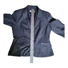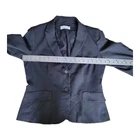 This Calvin Klein women's blazer jacket in grey is made of polyester with a canvas fabric type and features a button closure. It is designed in a mid-length style with long sleeves, making it suitable for various occasions such as workwear, business, casual outings, parties, and even formal events. The jacket has a regular fit with stretch fabric for comfort and is ideal for all seasons, providing a smart and stylish look for UK size 12 women. Pit to Pit: Approx 19" Collar to Hem: Approx 23" US 8 UK 12