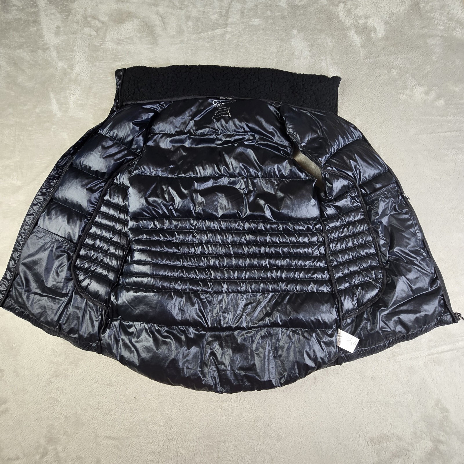 Calvin Klein Performance Vest Womens Medium Black Zip Pockets Premium Down Item: Calvin Klein Performance Men's Puffer Vest Size: Medium (M) Color: Black Fill: 90% Down / 10% Feather Shell: 54% Polyester, 46% Nylon Style Code: PF5W8647 | PFCHC6005 Made in China Features: Lightweight but warm with down/feather fill Two zippered pockets (including secure smartphone pocket) Full front zip closure Sleek, shiny nylon/poly shell Stand collar for wind protection Durable stitched Calvin Klein branding on inner lining Measurements (approximate): Chest (Pit to Pit): 19.75" Length (Shoulder to Hem): 27" Shoulder Width: 14" Bottom Width (Hem): 21" Condition: Gently pre-owned. No holes, stains, or odors. All zippers function properly. Ready to wear! All items are carefully examined, described, measured and photographed to the best of our ability. Please Note: All measurements are taken flat and are approximate. Please compare to a like article of clothing to ensure fit. Colors may appear slightly different due to lighting or screen settings.