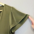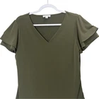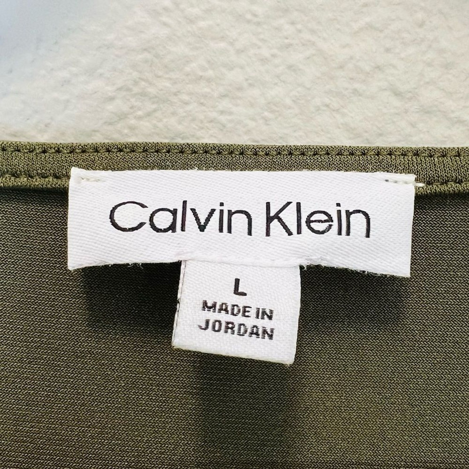 Calvin Klein Women's Top Olive Green Blouse Double Tier Short Sleeve Size: Large Chic and versatile olive green blouse. Features a stylish V-neck and short sleeves. Ideal for any occasion. Condition is "Pre-owned" in excellent Condition. This item is gently used with some signs of wear, please refer to photos for exact details. - No Hole. No Stain. Free Smoke Home. Material: 95% Polyester. 5%Spandex Made in Jordan MEASUREMENTS Flat Approx. please compare with your own before buying : Armpit to Armpit: 19” Length :25” Accept Reasonable Offers Bundle and Save - Fast Shipping Thanks for Looking!