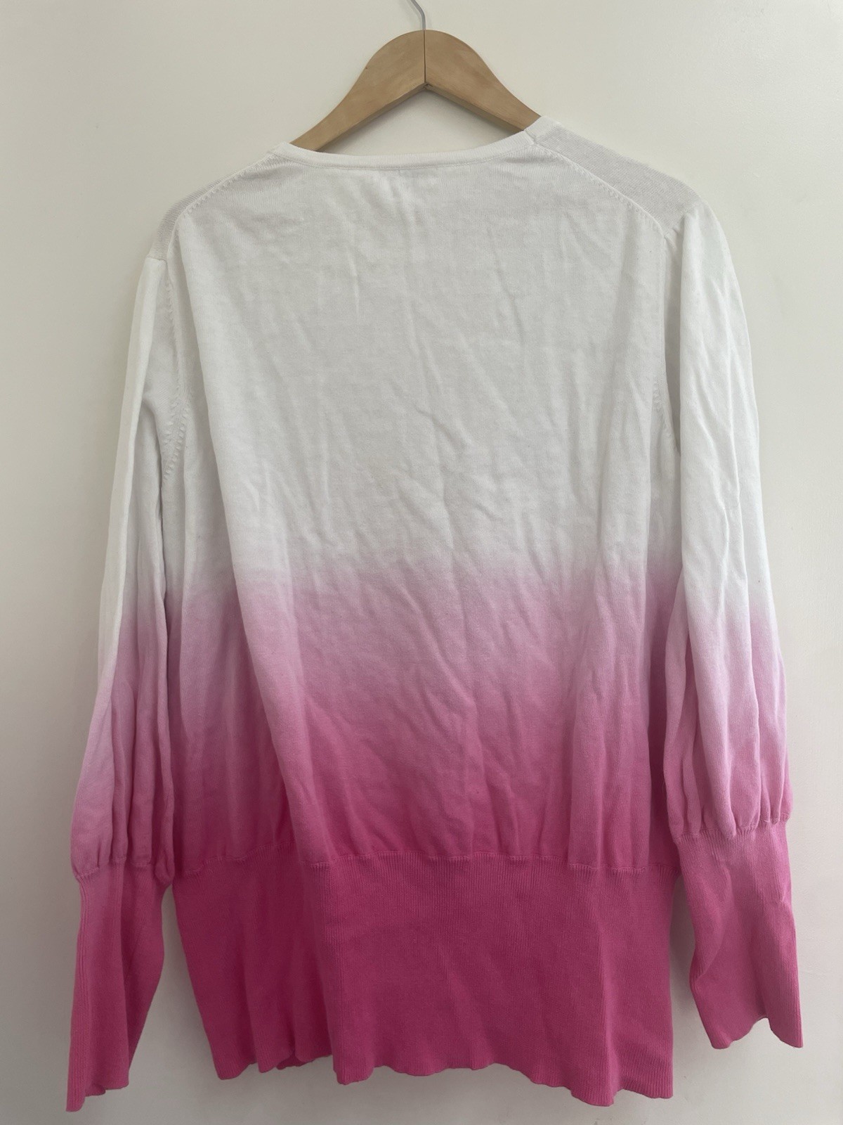 Calvin Klein Women's Ombre Fade Button Front Long Sleeve Cardigan White Pink 2X. Condition is pre-owned. Smoke free, pet free home. Shipped via USPS Ground Advantage. In good condition. There are small stains on the front. Free of rips.