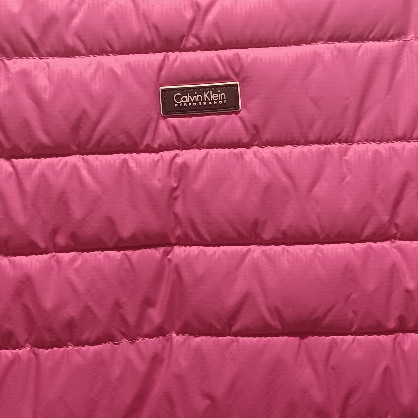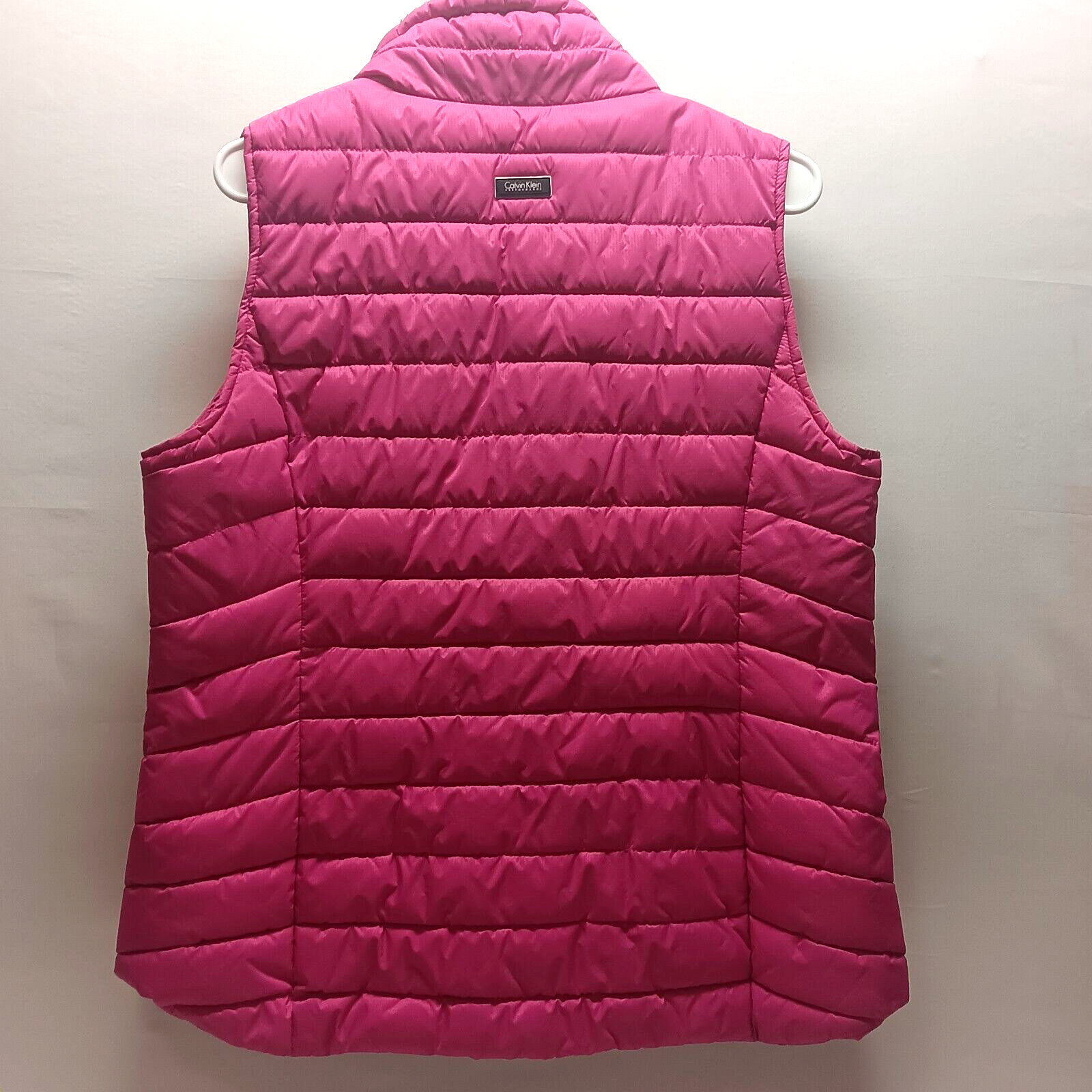 Calvin Klein Women’s Performance Pink Quilted Puffer Vest Medium Sherpa Collar This ladies vest is in good pre-owned condition with no holes or stains and minimal washwear. Please see all photos as this is the exact garment you will receive. Measurements taken with item laying flat- armhole to armhole is 20", length from high point of shoulder to bottom hem is 24". Features side zip security pocket and headphone access. Nylon/poly blend, machine wash cold. Thanks for shopping TKO Specialties