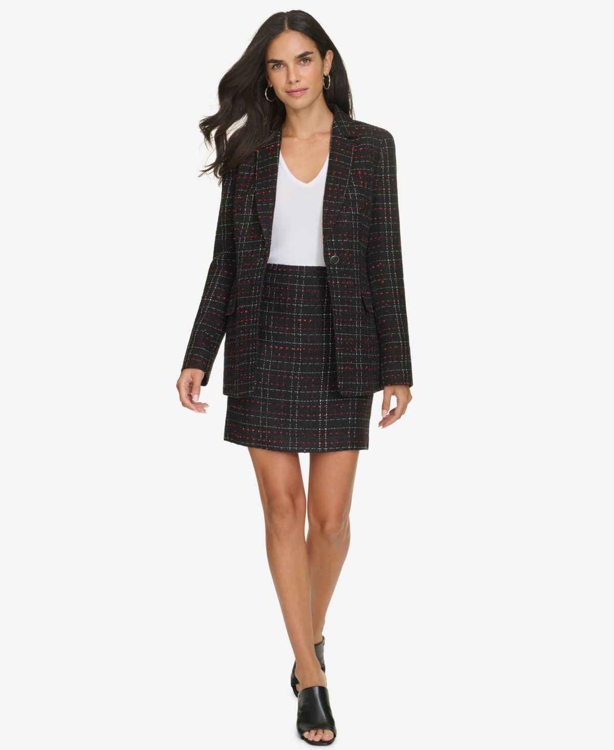 Calvin Klein Women's Plaid Tweed Skirt Black Size 14 MSRP $99 Add a touch of modern flair to your office attire with this Calvin Klein plaid tweed skirt. Features Zipper with hook and bar closure Lined Shell: 95% polyester 5% spandex; lining: 95% polyester, 5% spandex Dry clean Imported