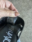 This Calvin Klein Women's Black Leather Slip On Sandal in size 6 is a stylish and comfortable choice for the summer season. Made of high-quality leather with a slip-on closure and flat heel, these sandals feature the iconic Calvin Klein logo accent. The solid black color and minimalist design make them versatile for various outfits, while the comfortable leather lining and shoe width ensure all-day wearability. Perfect for casual outings or a day out in the sun, these sandals are a great addition to any woman's wardrobe.