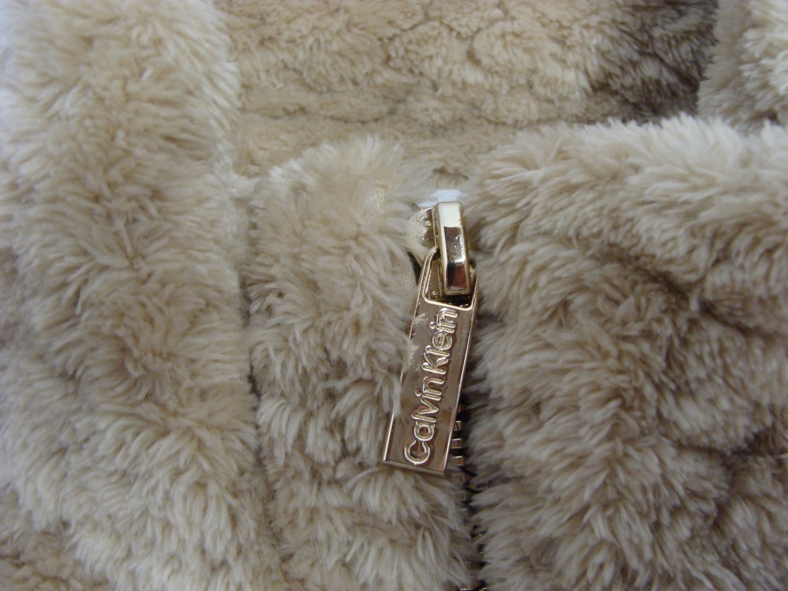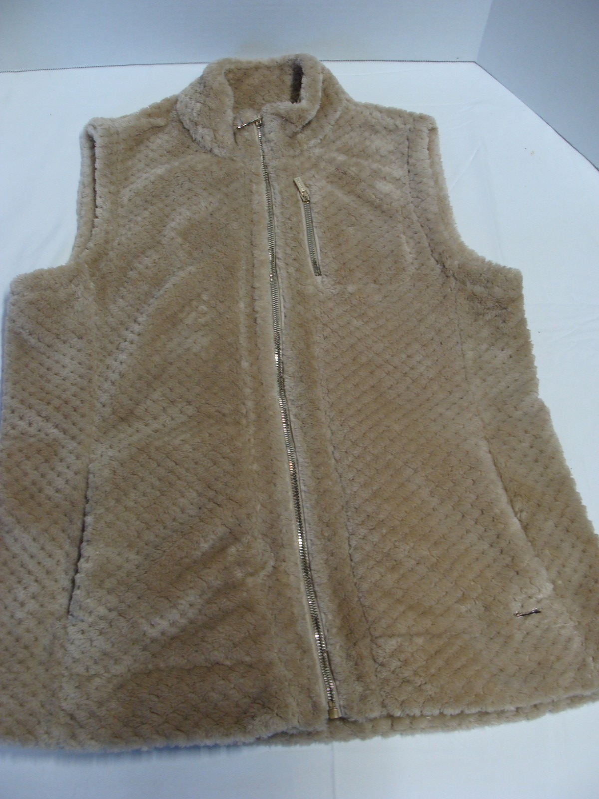 The Calvin Klein Women's Size M Zip Up Vest in light brown tan is a stylish and versatile piece perfect for travel, casual outings, or workwear. The faux fur lining and insulation material make it a cozy and warm option for the winter, fall, or spring seasons. With a mid-length design and sleeveless style, this vest features a full zip closure, pockets, and a soft outer shell fabric. The designer brand and classic theme add a touch of sophistication to this wardrobe staple. See Pictures for Condition Details. I DO COMBINE SHIPPING.