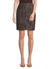 Calvin Klein Women's Tweed Mini Pencil Skirt burgundy Black Size 10 MSRP $89 Styled from chic tweed, Calvin Klein's mini-length pencil skirt brings elegant texture to your work wardrobe. Features Hidden back zip with hook-and-eye closure Side-slit pockets; back pockets Tweed design Lined Polyester, acrylic, wool; lining: polyester, spandex Dry clean Imported