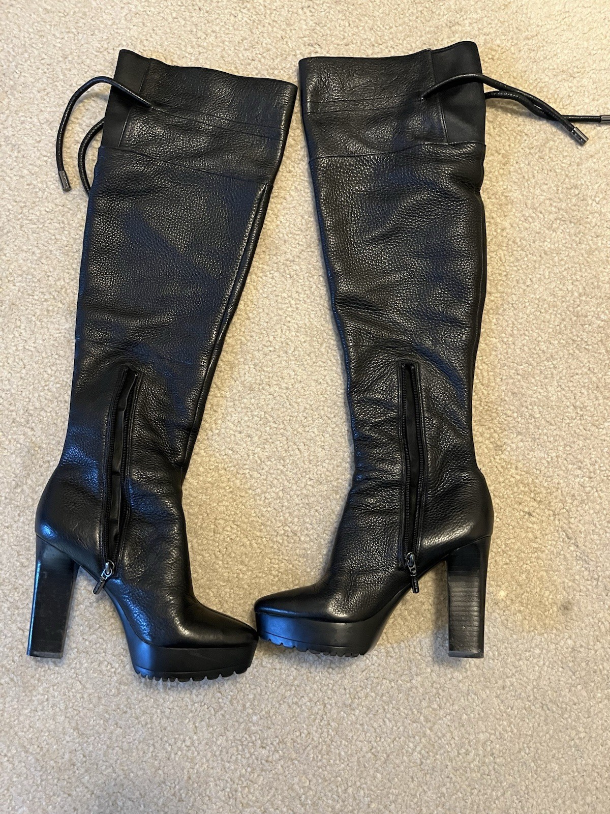 These boots are authentic and purchased from Macy’s. They have been worn a few times years ago and have been it it’s box since then. They are in excellent condition and as pictured, and they are very comfortable.
