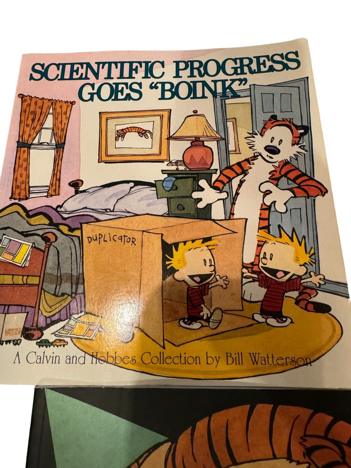 Dive into the world of Calvin and Hobbs with this collection of four graphic novels by Bill Watterson. Immerse yourself in the hilarious adventures of the dynamic duo as they navigate their way through life and death situations. This set includes "Calvin and Hobbs", "Another Planet", "Homicidal" and "Drooling", all in trade paperback format. Explore the modern age era of US comics with this collection, published by Scholastic. Perfect for fans of action and comedy, these comics are sure to keep you on the edge of your seat. Add this set to your collection of collectibles, comic books and memorabilia, and enjoy the thrilling ride of Calvin and Hobbs!