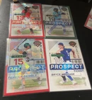 The set of 12 cards including a bonus for free!!! All 12 for one Price!! Buyer receives the Super Short Print /25 Cam Smith Green pulsar Prizm Auto SSP which values at $155-$170 all to itself... Among the other chasers there is, Paul Skenes Rc Max Muncy Red Ice Prizm Grant Shepardson Auto Green Holo Prizm Brock Porter Blue Ice Prizm SP Kevin Sim Red Ice Prizm Rhett Lowder Blue Ice Prizm SSP Rodney Green Jr Red Ice Prizm Ethan Salas Red Ice Prizm Bryce Meccage Bronze Edition SSP Fenwick Trimble Red Ice Prizm JD Gonzalaz Green Holo Prizm Heston Kjerstad Rc Red Ice Prizm Buyer grabs a steal in a package deal of all Prospect edition Chasers and Collectables The Cam Smith Prospect Edition is a highly sought-after trading card autographed and numbered to 25 short prints.12 cards that are part of the 2024 Panini Prospect Edition and are officially licensed by MLB. These trading cards are made of high-quality card stock and come with features like serial numbering, holograms, and limited editions. This exclusive set includes players from various teams like the Oakland Athletics, Tampa Bay Rays, and more, making it a valuable addition to any collector's sports memorabilia collection.
