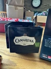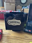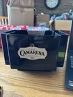This Camarena Tequila promotional barware set is a must-have for any tequila enthusiast. The set includes a black bar caddy with the Camarena Tequila logo, perfect for displaying napkins. This is a great addition to any bar or collection. I marked this as used as it is scuffed from being packed and unpacked at flea markets.