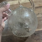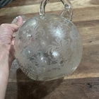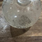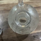 The Cambridge Rose Point Ball Shaped Tilt Decanter is a vintage elegant glassware piece made by Cambridge Glass in the United States. Standing at 7.5 inches tall, this stunning decanter features a Rose Point pattern and a clear glass material with a glossy finish. The ball-shaped design adds a touch of sophistication to any barware collection, making it a perfect addition for those who appreciate elegant and unique glassware pieces. The original production style of this decanter showcases the craftsmanship and quality of Cambridge Glass, making it a valuable and stylish piece for collectors. 7./5” long Approx 3” wide