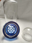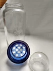 Clear glass Camel Cocktail shaker in very good condition with no chips or scratches. The top is blue plastic. The blue strainer lid has a silicone inside for a tight seal. The Clear bubble top is made of plastic. The shaker has the familiar Camel etched on the front. The shaker with lid is 9" tall, good for mixing a couple of drinks at a time. Please see photos for appearance and condition. Shipped with care. Thanks for looking!