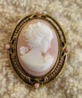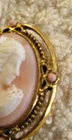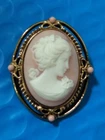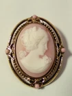 Please see all photos as they are part of the description. Approx. Size: 1.5" tall by 1" wide. The brooch is in great condition not sure what type of material it's made out of may be resin or some other type of materials.