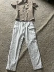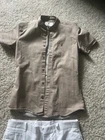 This Father Sons beige shirt is the perfect addition to any wardrobe. The shirt features a collared neckline, short sleeves, and a button-down closure. It is made with a blend of polyester, spandex, and cotton, making it both comfortable and durable. The shirt has a slim fit and is designed with a solid pattern that is perfect for any occasion, whether it be casual or dressy. The shirt also features accents such as buttons and a logo, adding a touch of detail to the overall design. Pair it with white linen inc pants in size 29 for a complete look. This garment is machine washable and suitable for all seasons. Get your hands on this classic piece that is sure to become a staple in your wardrobe. Pet free smoke free home No, no stains no holes
