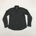 Camisa Hugo Boss Para Hombre Mediana Abotonada Manga Larga Floral Gris 100 Algodón (M)