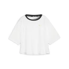 Crop Top Crew Neck Short Sleeve Athletic T-Shirt Product Details Slim fit Boxy fit Cropped length Crew neck Metallic PUMA logo Whether it's the training field, the gym, the track, or anywhere in between, pull on this graphic tee and get to work. This tee is built to sweat in, with moisture-wicking technology, but it also has a cropped length and boxy fit for a loose feel. Additional Details Color: White Occasion: Casual Gender: Womens Age: Adult Brand: Puma