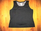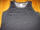 Woman's Plus Size Zenergy By Chio's Black Compression Spandex Tank Yoga Fitness Top Size-3XL 16-18 New. Made of soft easy care 88% Polyester, 12% Spandex. Top is unlined. Relaxed 44" chest, overall length 23". Rear of inside neck has leopard accent. Comes from a pet free smoke free home.