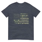 You've now found the staple t-shirt of your wardrobe. It's made of 100% ring-spun cotton and is soft and comfy. The double stitching on the neckline and sleeves add more durability to what is sure to be a favorite! • 100% ring-spun cotton • Sport Grey is 90% ring-spun cotton, 10% polyester • Dark Heather is 65% polyester, 35% cotton • 4.5 oz/yd² (153 g/m²) • Shoulder-to-shoulder taping • Quarter-turned to avoid crease down the center • Blank product sourced from Bangladesh, Nicaragua, Honduras, Dominican Republic, Haiti or Guatemala Disclaimer: Due to the fabric properties, the White color variant may appear off-white rather than bright white. This product is made especially for you as soon as you place an order, which is why it takes us a bit longer to deliver it to you. Making products on demand instead of in bulk helps reduce overproduction, so thank you for making thoughtful purchasing decisions! Size guide LENGTH (inches) WIDTH (inches) S 28 18 M 29 20 L 30 22 XL 31 24 2XL 32 26 3XL 33 28 LENGTH (cm) WIDTH (cm) S 71.1 45.7 M 73.7 50.8 L 76.2 55.9 XL 78.7 61 2XL 81.3 66 3XL 83.8 71.1