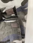 Camo cargo pants. Hook & loop pockets. 2 front open slash pockets. 1 zippered pocket. No size tag. Flat lay measurements as follows:, waist 17”, hip 22”, inseam 29”, rise 12”. Smoke free, pet free environment.