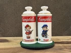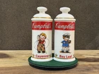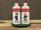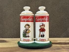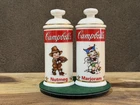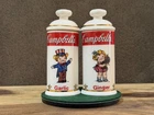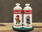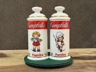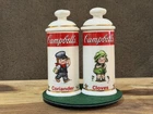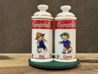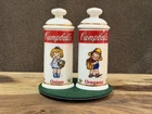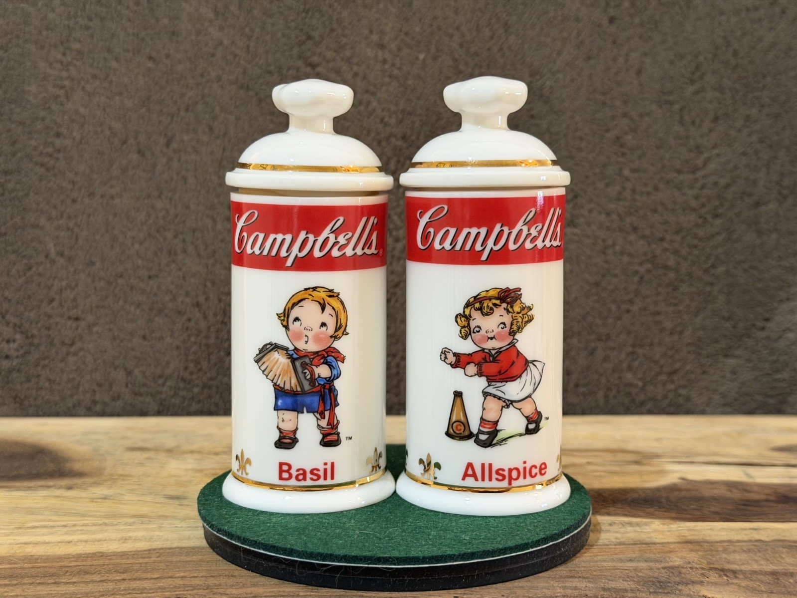 This product is a *VINTAGE* set of Campbell's Soup Kids “1995” Porcelain Spice Jars and Rack made by The Danbury Mint Company. The set includes 24-spice jars with lids, all made of ceramic and porcelain in a multicolor design, Hand Crafted in Sri Lanka. Both the jars and wooden rack are in *MINT CONDITION* The jars are mounted on a wood rack, designed in a cabinet-mounted style. Each jar stands approximately 4.0” inches tall and features 23kt gold accents. The set includes a custom wooden spice rack designed for either wall hanging or free-standing display. While individual replacement jars can be found at retailers like Replacements, Ltd. for around $50 each, a complete "Mint Condition" set with the rack is a rare find for collectors these are a *RARE* nostalgic pieces from the 1990’s, perfect for adding a touch of retro charm to any kitchen or home decor. *As a Bonus included are (3-FREE) Vintage “1997” Campbells die-cast Trucks & Van* These 100th. Anniversary Diecast truck/van /car models typically sell for around $10 – $26 each. Item Specifics: -This item is in: *MINT CONDITION-UNUSED-A DISPLAY PIECE ONLY* 24-Jar w/Tight Lids, and NO visible signs of ware, scuffs or scratches. -Size: 4.0” High w/Lid, 1.75” Base , 2 7/8” Deep -Rack size: (See Item Description) -Suitable for food grade items. (Wash Before Use) -Highly recommended handwashing only. -Hand Crafted in: Sri Lanka Trademarks & Licensed By The Campbell Soup Company -Each item is individually photographed: Jars w/Rack *PICTURED* are the *EXACT ONES YOU WILL RECEIVE*