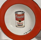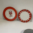 The Campbell's Tomato Soup Can Ceramic Soup Bowl & Salad Plate is a rare vintage set by Block Art featuring Andy Warhol's iconic design. Made of Bone China, the round bowl and salad plate are adorned with the classic Campbell's soup can pattern in white. The set includes a soup bowl and salad plate, both microwave and dishwasher safe, making them suitable for all occasions. With a printed backstamp indicating its originality, this unique collectible set is a must-have for fans of Andy Warhol's art and vintage pottery enthusiasts.