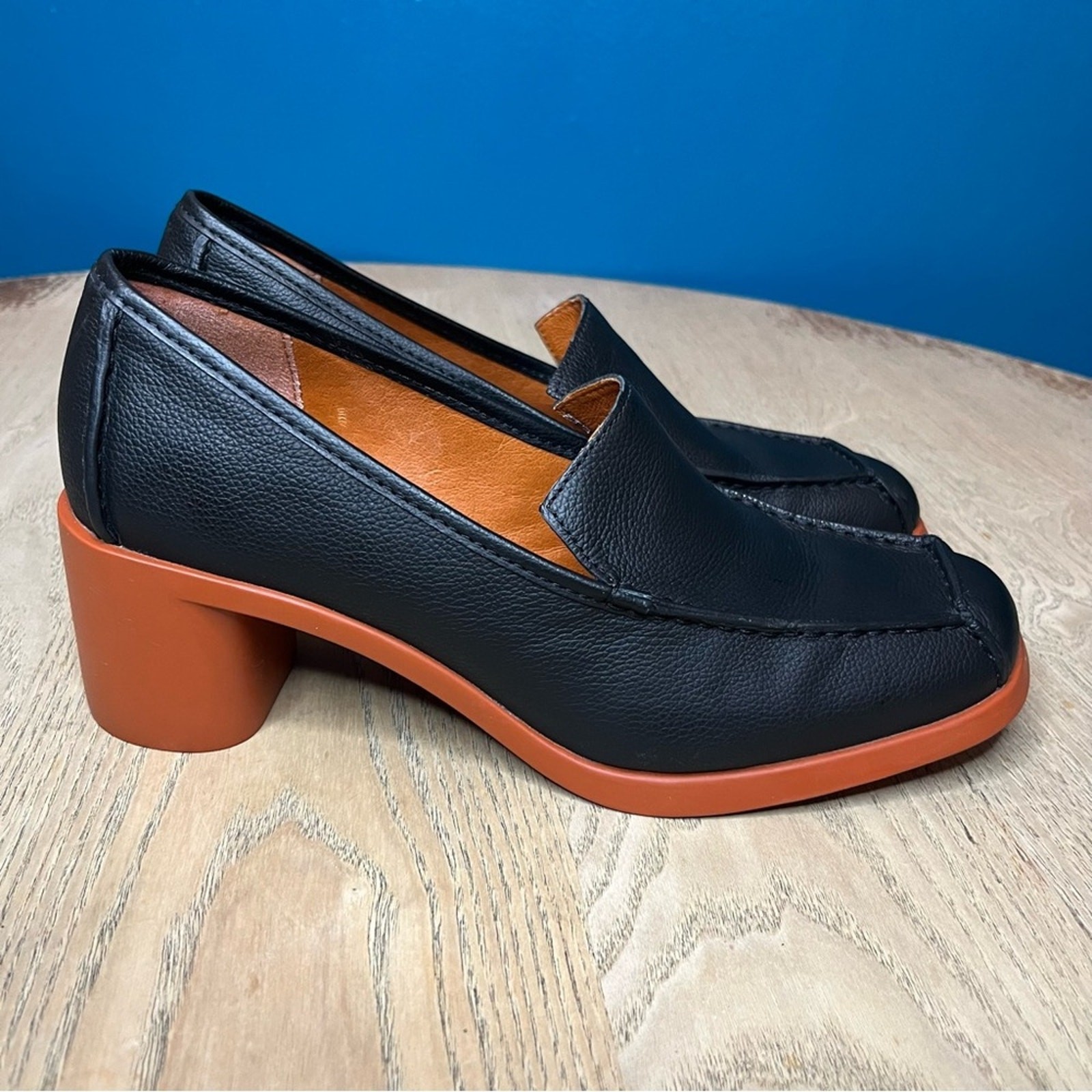 Camper Meda Women’s Black Leather Loafers Chunky Comfort Heel Size 38 / US women’s 8 Please review all photos!