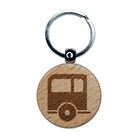 Camper Trailer Camping Icon Engraved Wood Round Keychain Tag Charm