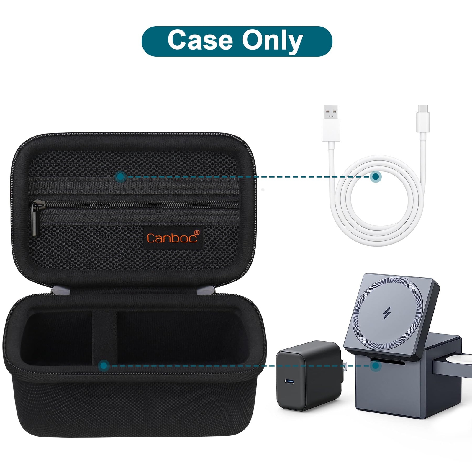 Canboc Travel Carrying Case Compatible with Anker 3-in-1 Cube 15W Max Fast Charging Foldable Wireless Charger, Zipper Mesh Pocket fits USB Cable, Black (Case Only) 【Perfect Storage】CASE ONLY! (Anker magsafe charger and accessories are not included). For hard travel anker charging station case compatible with anker 3-in-1 cube 15W max fast charging foldable wireless magsafe charger, Zipper mesh pocket fits USB cable or other accessories. 【Premium Material】For anker 3-in-1 cube case made of scratch resistant fabric and high-quality durable EVA sturdy shell keeps your anker power station protected. Soft velvet interior lining keeps your 15W 3-in-1 magsafe charger and small accessories free from scratches. 【Simple and Practical Design】 The inner zipper mesh pocket storage space keeps the items well-organized, and can effectively store anker charger block accessories. Built-in elastic band can fix anker wireless charger and prevent 3-in-1 cube with magsafe from accidentally falling. Double strong zipper allows you to easily remove or put the anker cube 3 in 1 magsafe from the for anker charger block case. 【Portable Design】 External dimension: 5.56 x 3.24 x 3.15 inch. (L * W * H). Includes detachable wristband for easy carrying for your comfort. You can carry anker usb c charger anywhere, put for anker charging station magsafe cube case in your hand. Compact size and easy to use. For anker portable charger case is slim and lightweight, save space and can easily slide into your backpack or other bag. 【Perfect Gift】 Watch charger anker 3 in 1 cube case is easy to carry and is very suitable for home, travel, outdoor camping, business, school. For anker 3-in-1 magsafe charging case is also the best gift for Thanksgiving, Christmas, New Year, Remembrance Day, Birthday, Father's Day and Mother's Day. Shipping We offer FREE shipping on all orders! We ship within Three business days of payment, usually sooner. We use a selection of shipping services such as UPS, FedEx, USPS etc. We only ship to the lower 48 states, no APO/FPO addresses or PO Boxes allowed. Local pickups and combined shipping options are not provided at this time. Return You can return a product for up to 30 days from the date you purchased it. Any product you return must be in the same condition you received it and in the original packaging. Please keep the receipt. Payment We accept payment by any of the following methods: PayPal Please pay as soon as possible after winning an auction, as that will allow us to post your item to you sooner! Feedback Customer satisfaction is very important to us. If you have any problem with your order, please contact us and we will do our best to make you satisfied. Contact Us If you have any queries, please contact us via ebay. We usually respond within 24 hours on weekdays. Please visit our eBay store to check out other items for sale! Thank you for shopping at our store.