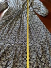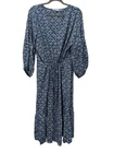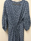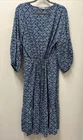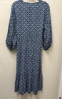 Candace Cameron Bure Womens Dress XL Blue Geo Print Puff Sleeve Cottagecore This Candace Cameron Bure women's dress in size XL features a beautiful blue geometric print and a flattering V-neckline. The dress is made of a lightweight, stretchy blend of spandex and modal, making it perfect for all seasons and occasions, from travel to weddings to casual outings. The dress also features 3/4 puff sleeves, ruffle accents, a tie waist and cinch waist, and a button closure. The dress is designed with a cottagecore theme, adding a touch of bohemian and grannycore vibes to your wardrobe. It is collarless and has a mid-length, making it suitable for both casual and dressy events. The dress is woven and comes in a beautiful blue color that will make you stand out in any crowd. Like new- never worn! Bohemian, Peasant, Cottagecore, Grannycore, Ruffle