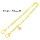 Description: Features: brand new and high quality flower pendant, sweet candy colorful acrylic chain, 10 colors optional. Can be used for mask lanyard, or buckle lobster clasp for fashion oval chain necklace. Made of high quality acrylic, hypoallergenic, will not irritate your skin, lightweight, comfortable. Large lobster clasp fits most masks and doesn’for t slip off like clip. Keeps your mask within reach and helps avoid contamination by laying down on other surfaces. Just grab your ear loops and put it on. Like eyeglass or sunglasses holder. Notice: Not Including Face Mask!! Specification: Material: Acrylic Length: app. 58cm(22.83in) Optional Color: 2 3 4 5 6 7 8 9 10 Quantity: pc Note: 1cm=10mm=0.39inch No retail package. Please allow 1-3cm error due to manual measurement. pls make sure you do not mind before you bid. Due to the difference between different monitors, the picture may not reflect the actual color of the item. Thank you! Package includes: x Mask Lanyard(Mask is not included!)(other accessories in the picture is not included.)