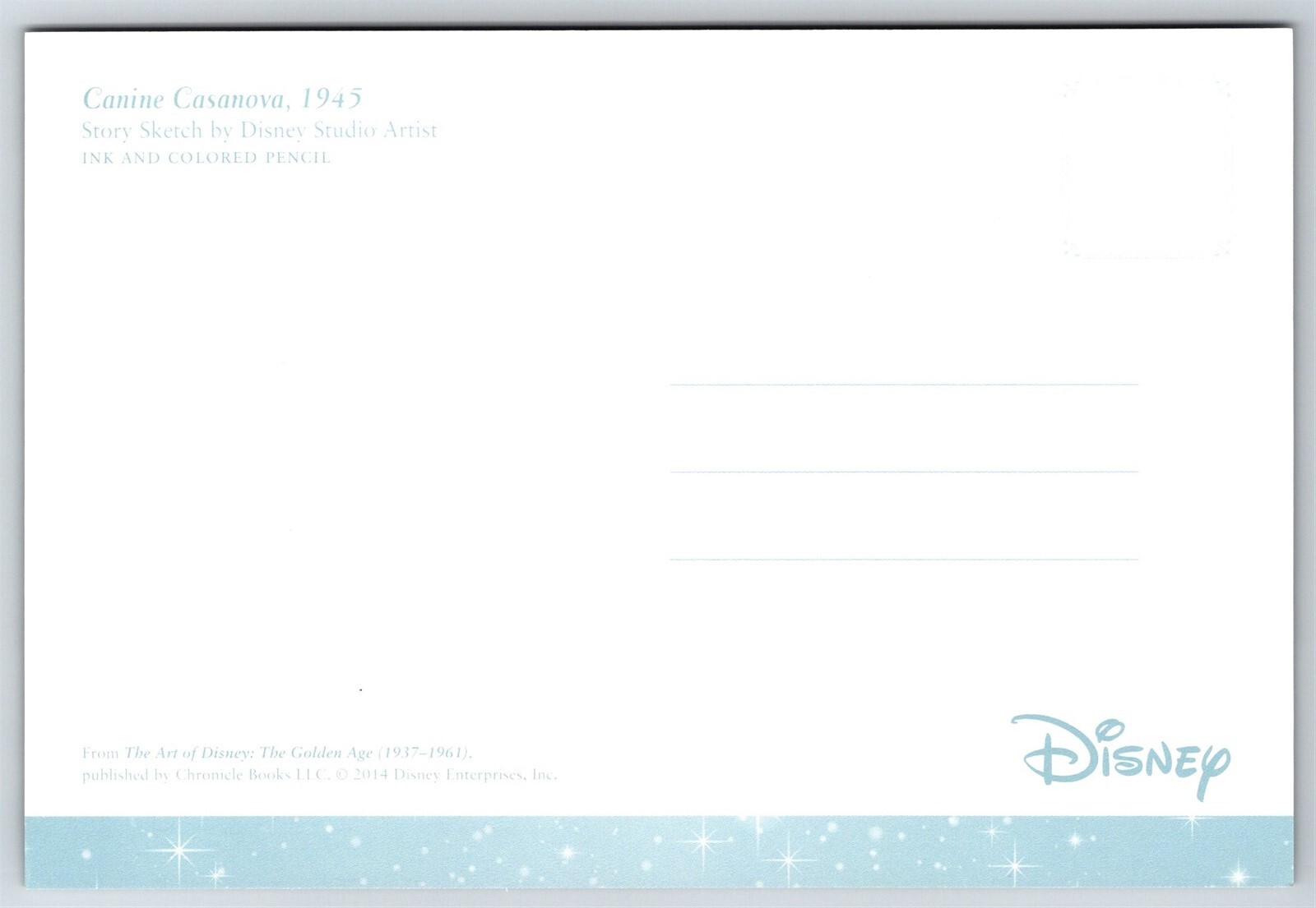 Canine Casanova Story Sketch The Art Of Disney 1945 Postcard CO10 Thank you for visiting! This is a continental size postcard, 4" X 6". In stock, usually ships within 24 hours of your purchase. Please ask questions if you are unsure about anything. My goal is for your complete satisfaction with the postcard and your experience. Check all my other listings in my store. RETIREDWITHBOOKS Powered by SixBit's eCommerce Solution