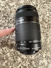 Canon EF-S 55-250mm f/4-5.6 IS II Lens is a telephoto zoom lens with image stabilization. It has a maximum aperture of f/4-5.6, compatible with Canon cameras. The lens is made of plastic and has a Canon EF-S mount. It offers auto and manual focus, with a focal length range of 55-250mm. This unit was manufactured in the 2000s in Japan.